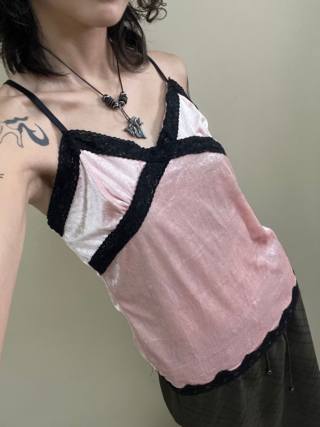 粉色絲絨蕾絲小背心