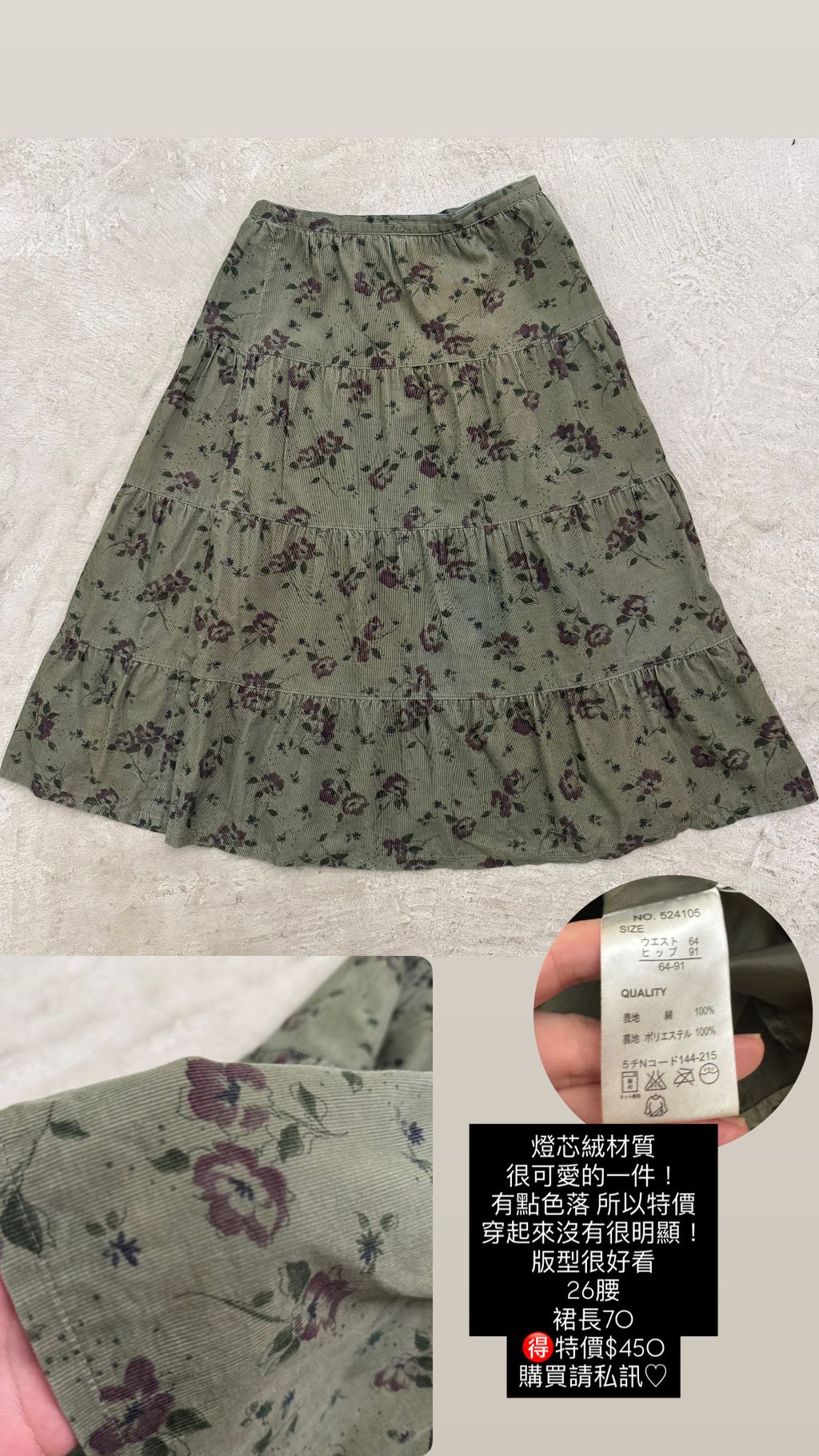 森系燈芯絨碎花裙 26腰