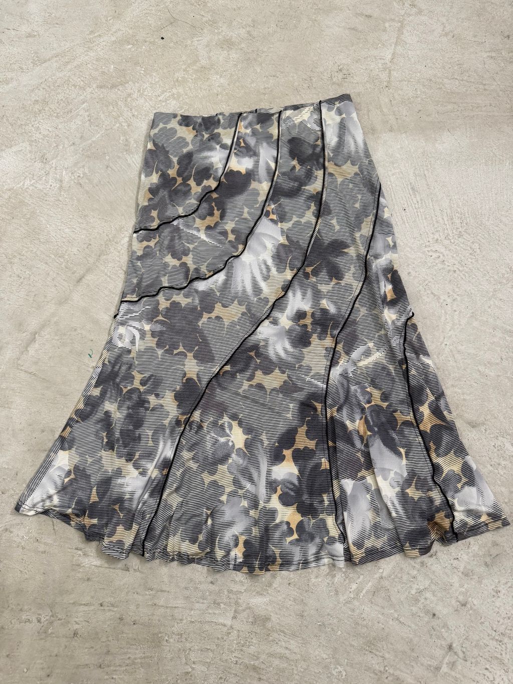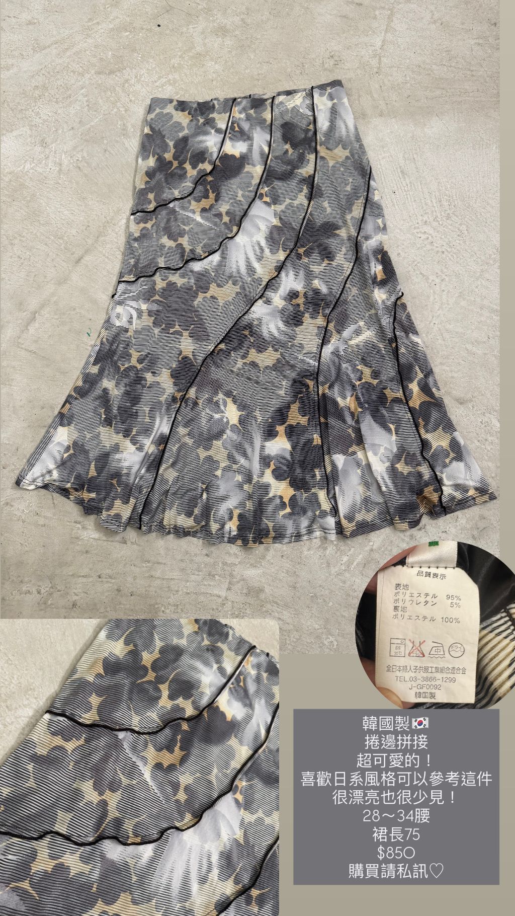 韓國製🇰🇷捲邊拼接灰色長裙 28~34腰