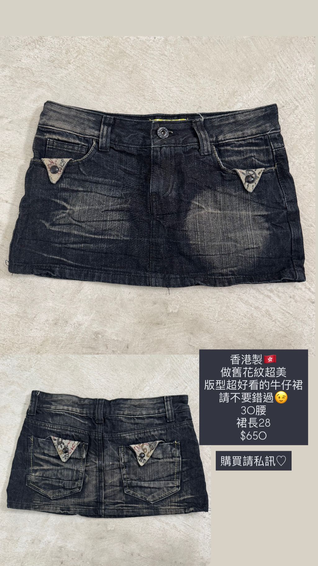 香港製🇭🇰深灰色牛仔短裙