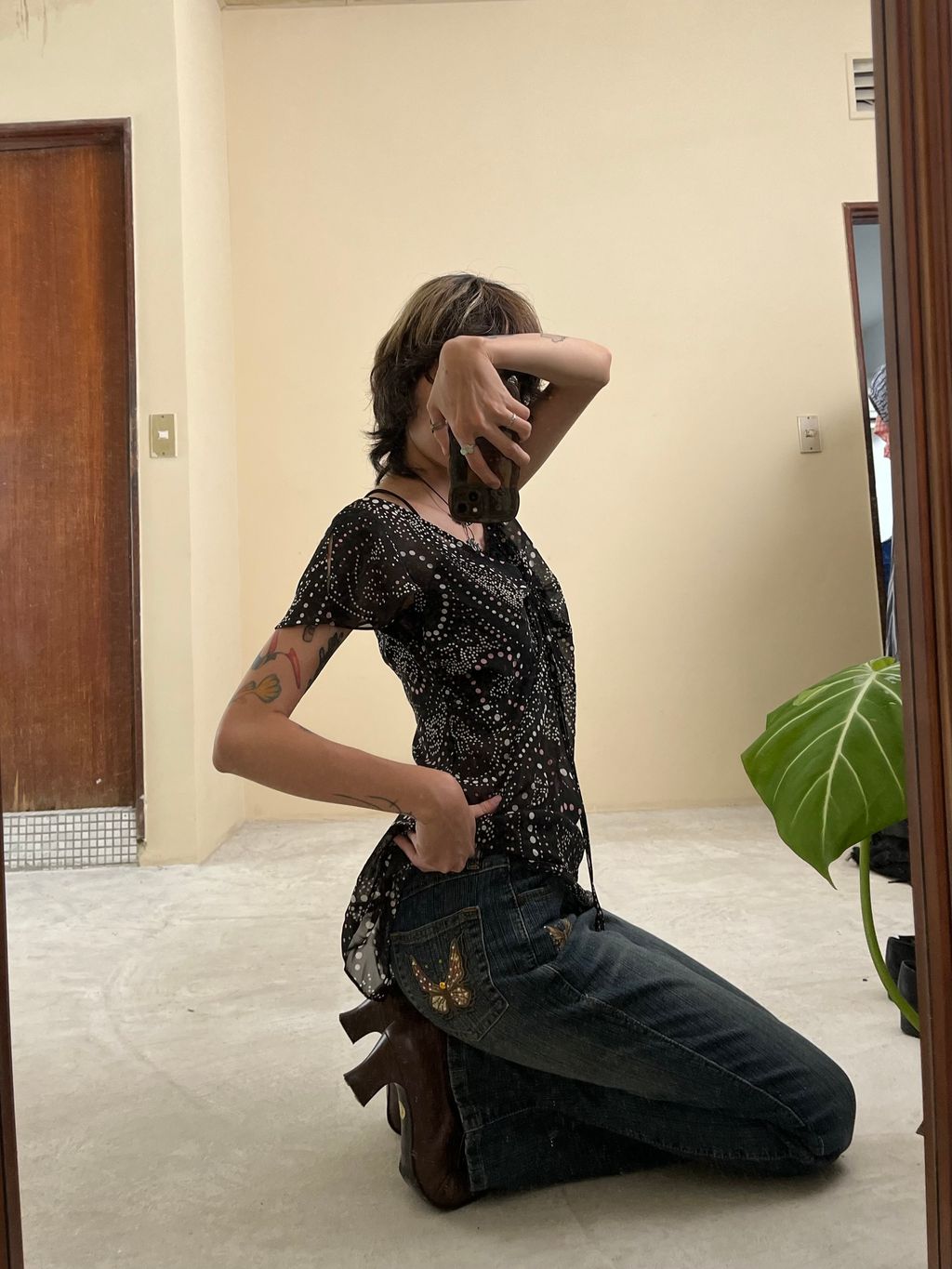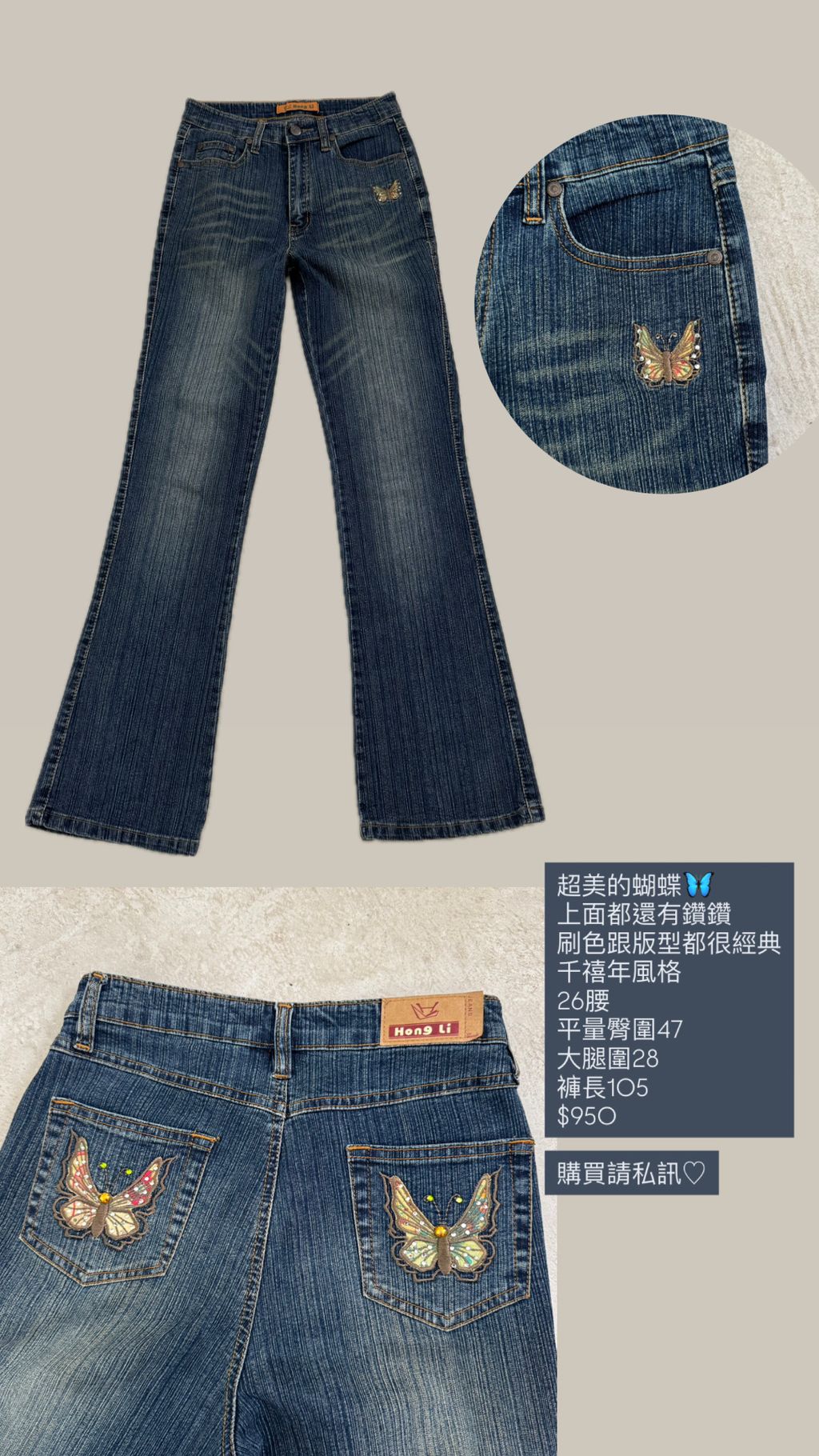 古著蝴蝶Y2K牛仔褲 26腰
