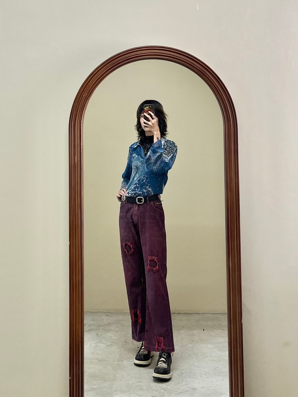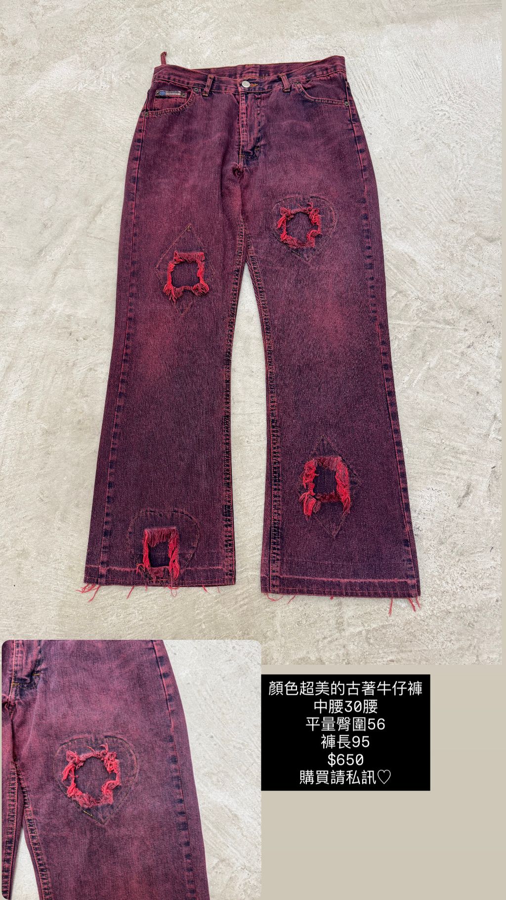 水洗紅造型牛仔褲 30腰