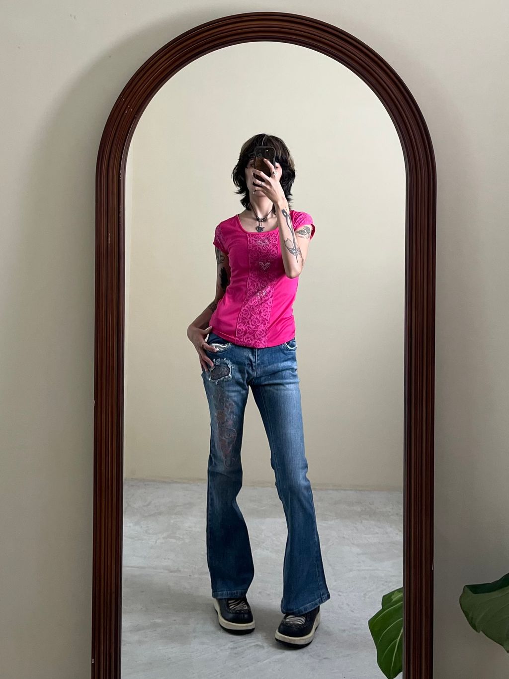 皇冠粉色Y2K喇叭褲 M 低腰30腰