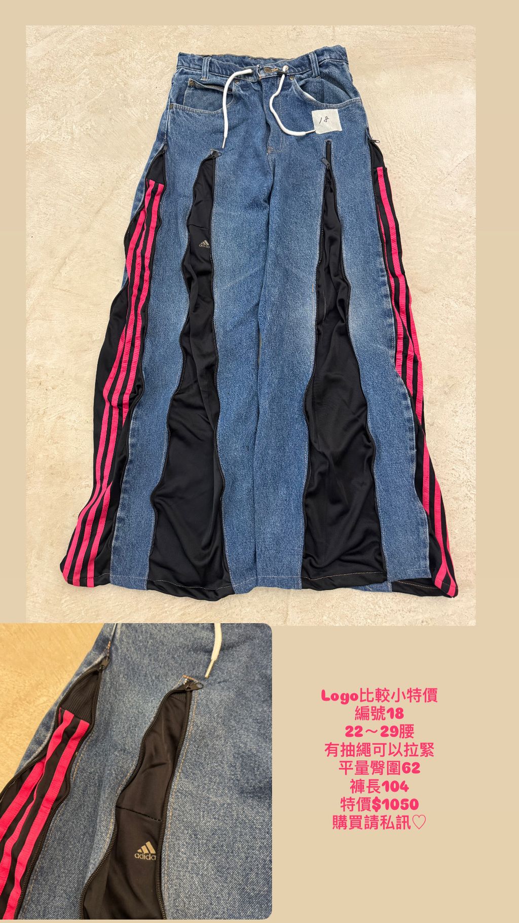 Adidas拼接拉鏈褲 22~29腰