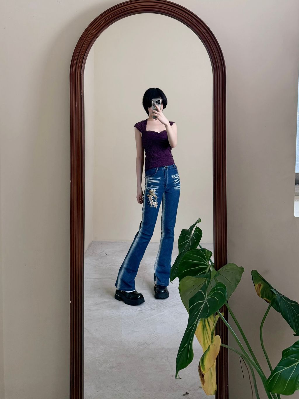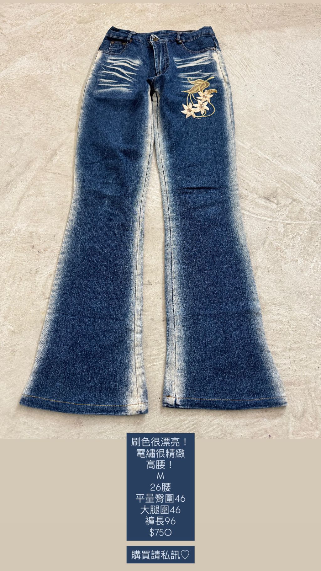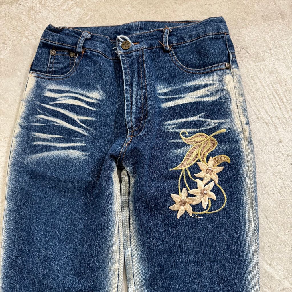 Y2K電繡刷洗牛仔喇叭褲 26腰 M號