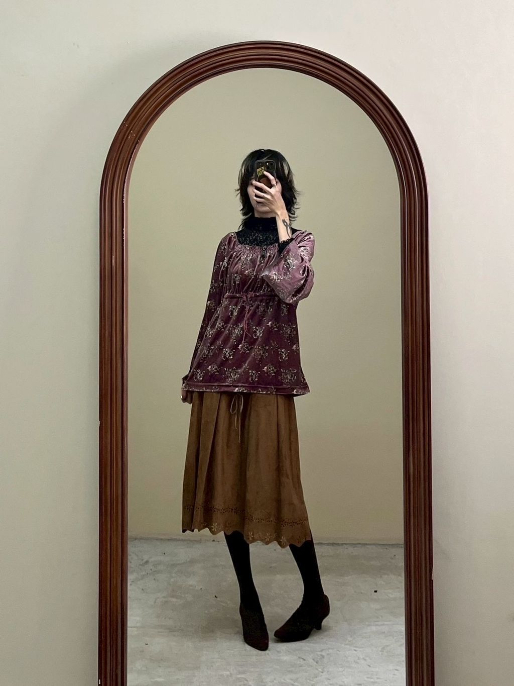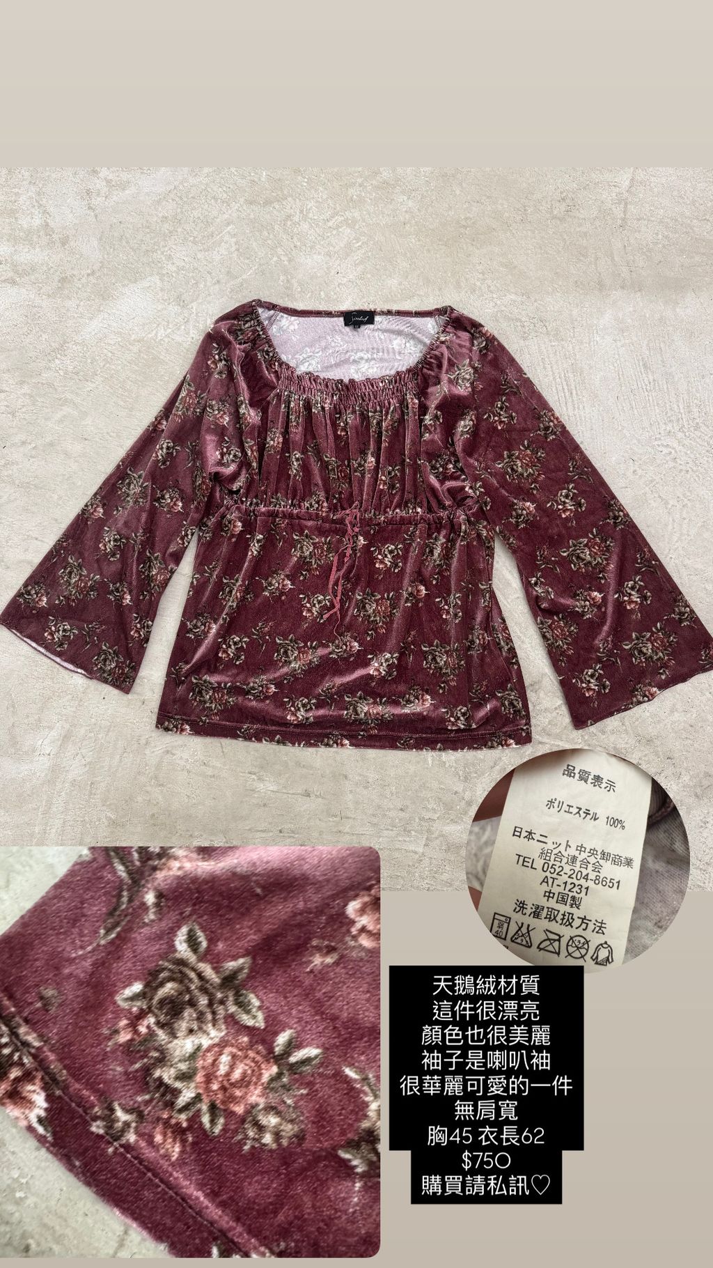 天鵝絨玫瑰喇叭袖上衣 超美✨